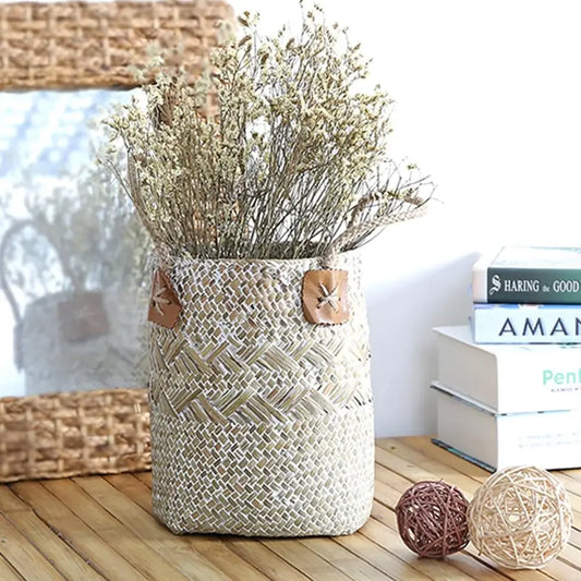 Cesta de Bambú y Algas Marinas – Estilo Nórdico para Plantas, Ropa o Almacenaje Multiusos