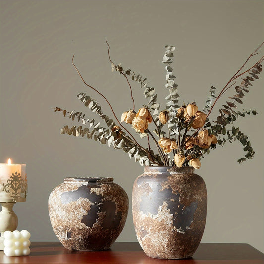 Jarrón Decorativo de Cerámica Estilo Farmhouse – Hecho a Mano con Acabado Envejecido (Grande)