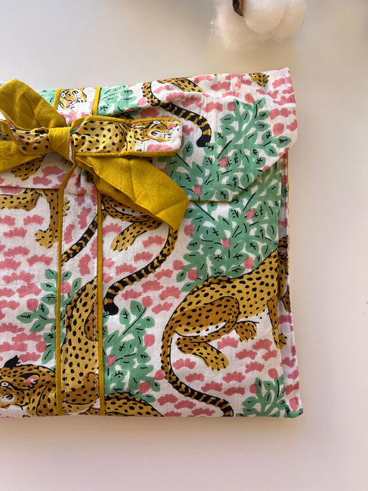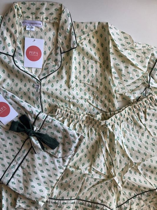 Pure Cotton Pajamas with Matching Bag. Teal and White - Size S