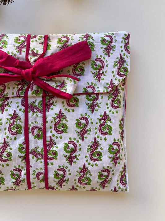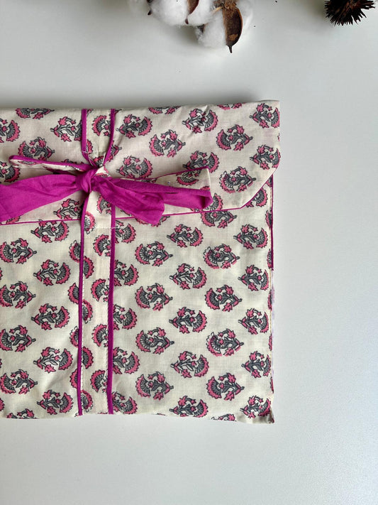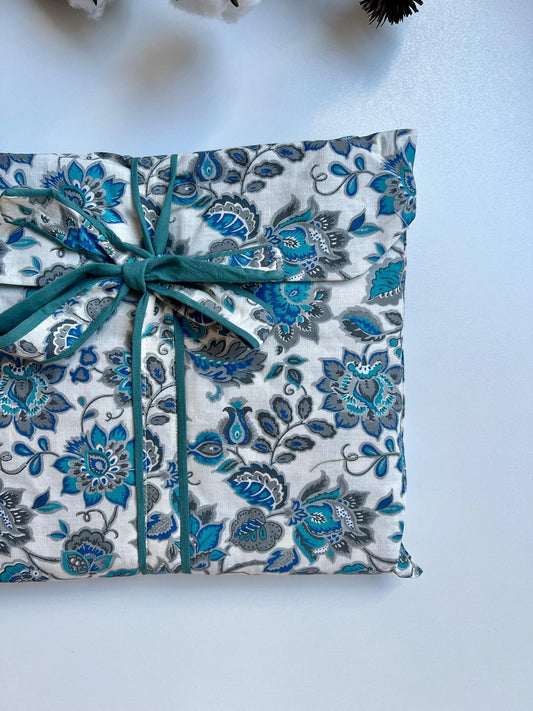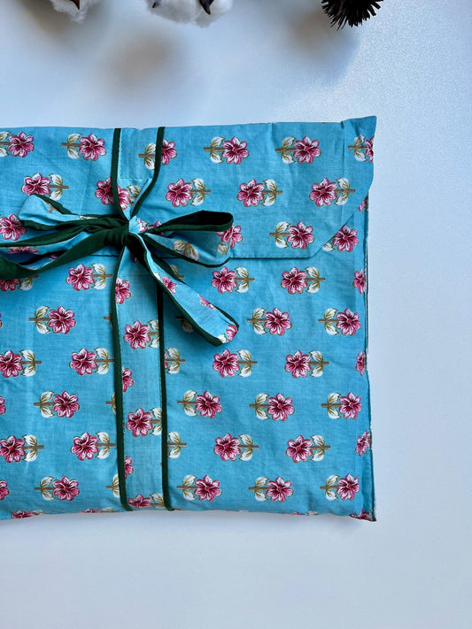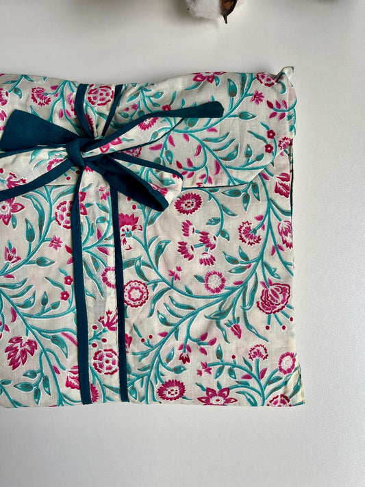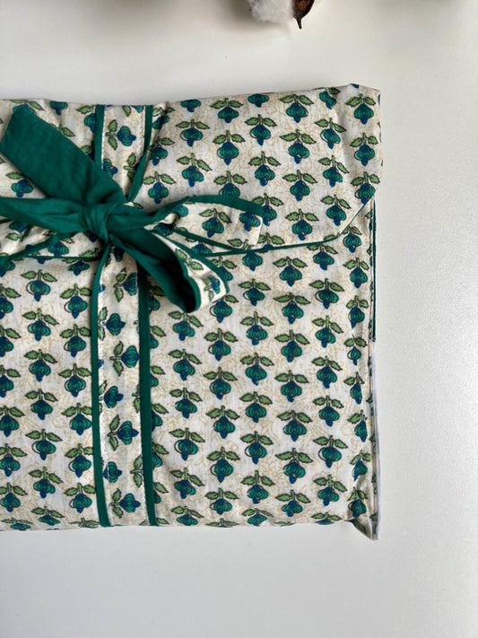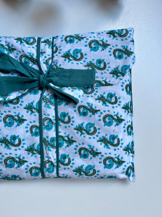 Pure Cotton Pajamas with Matching Bag. Teal and White - Size S