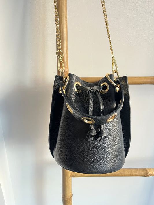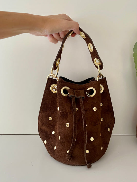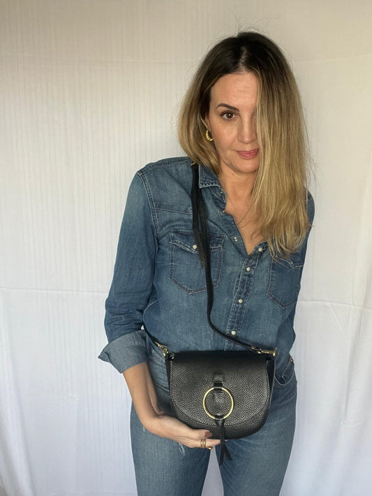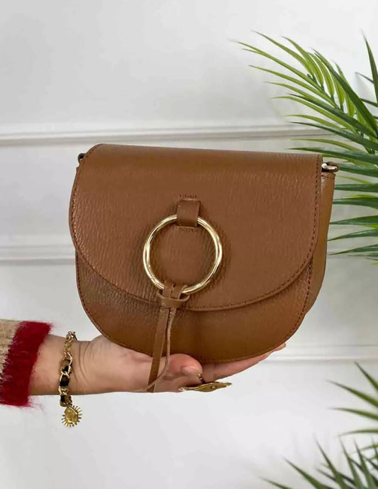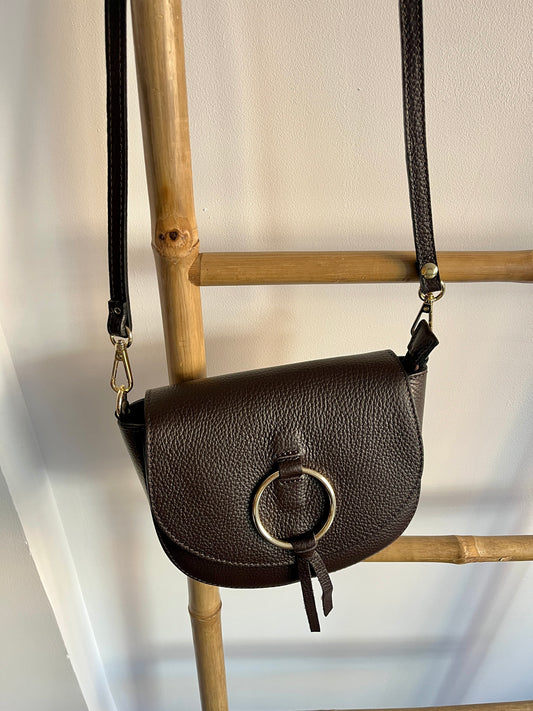 Bandolera Solapa Piel Aro - Marrón Chocolate