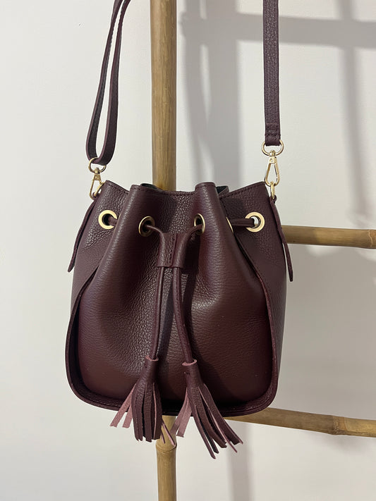 Bolso Bandolera Piel DuoTexturas - Burdeos