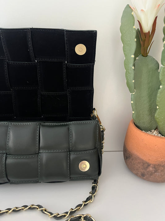 Bolso Bandolera Piel Verde Oscuro con Diseño de Cuadrados