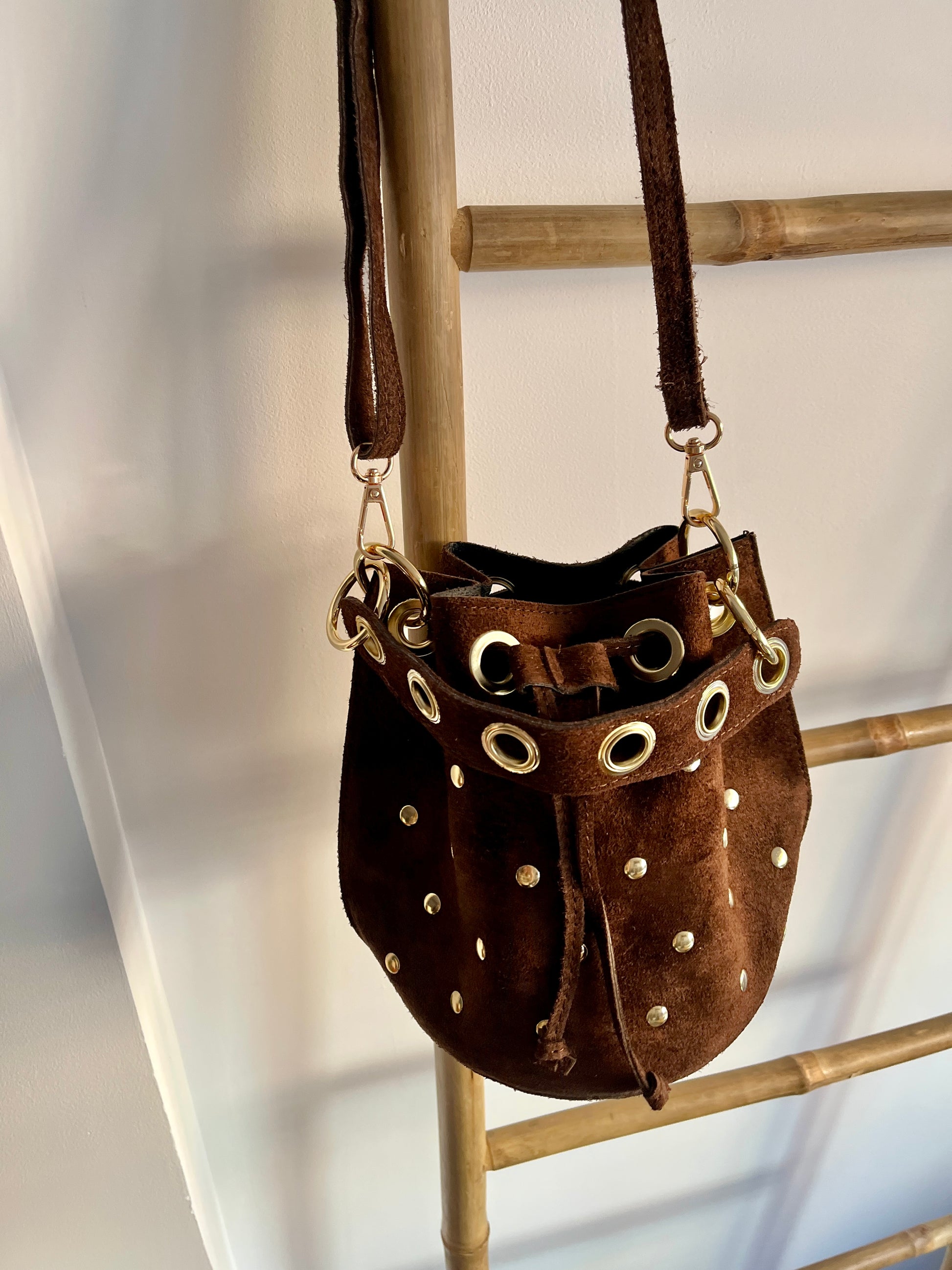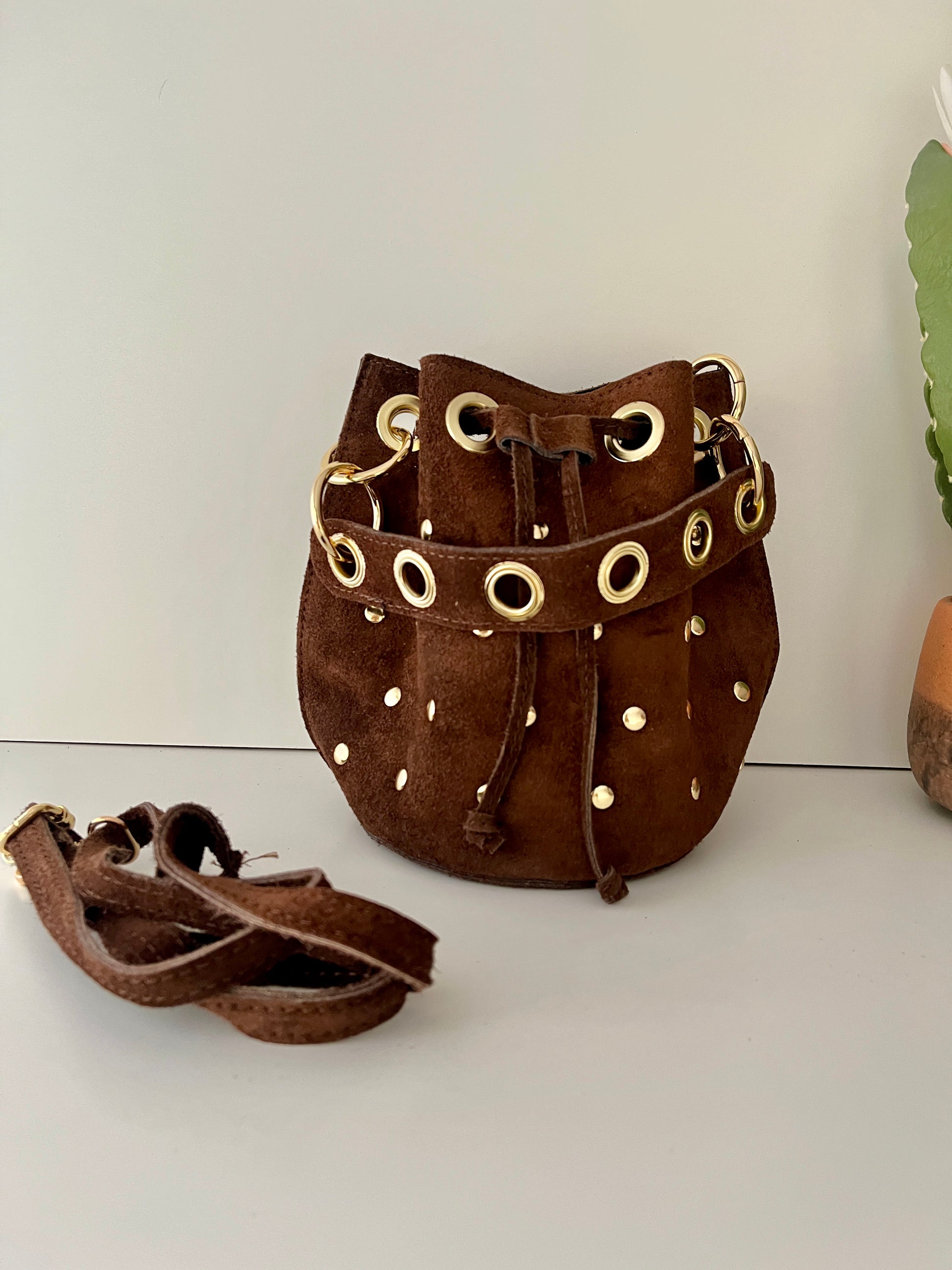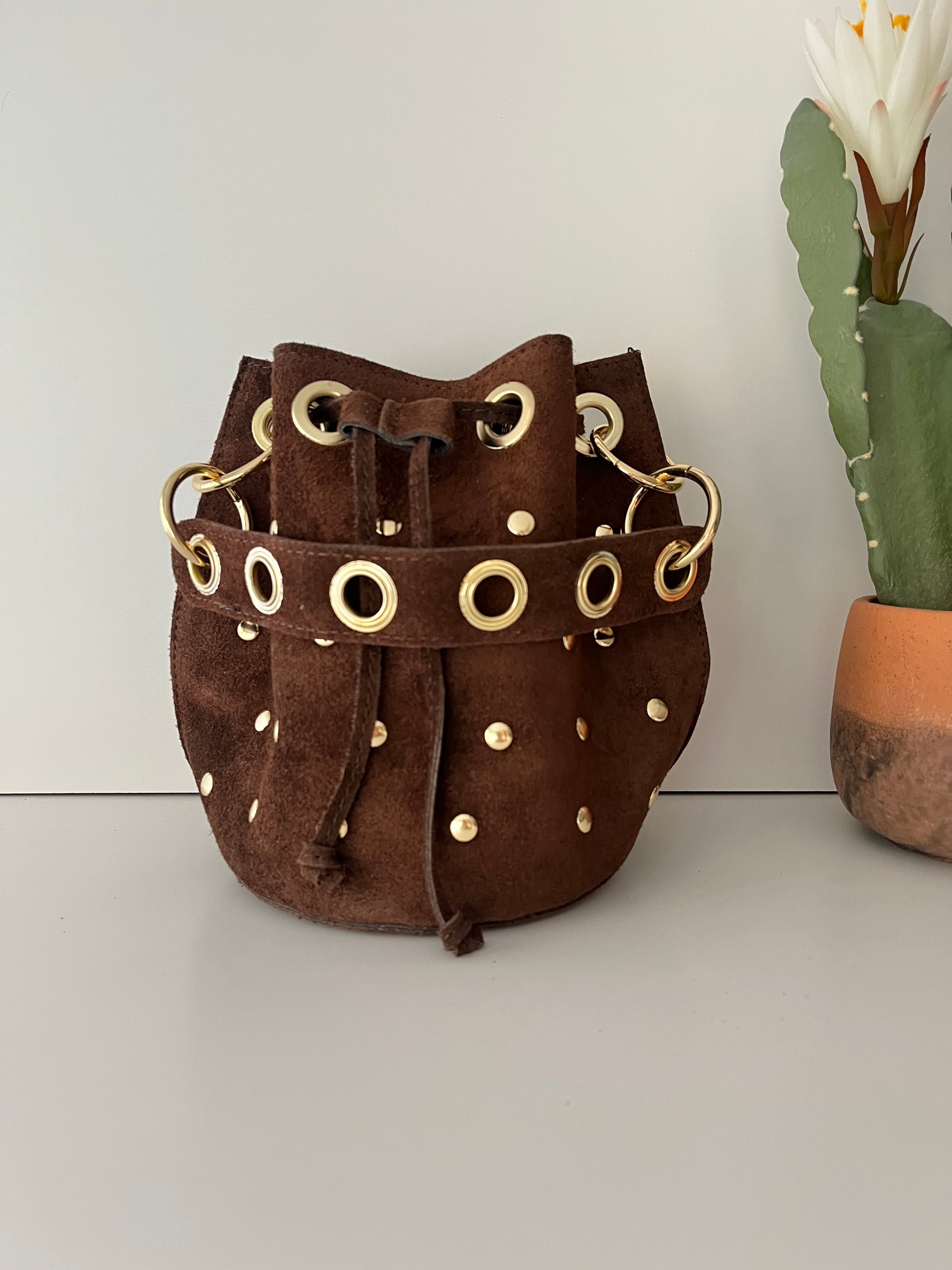 Viene con una tira bandolera extraible en piel y cadena dorada.